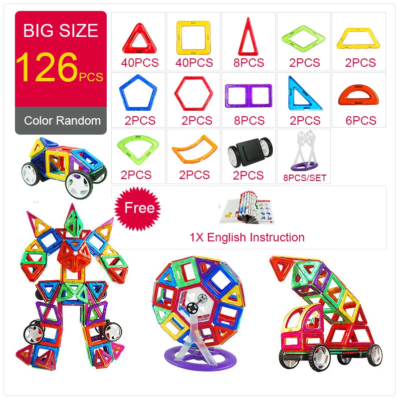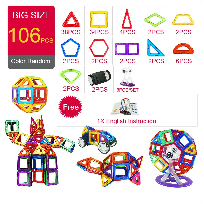 44pcs-157pcs Big Magnetic Designer Construction Set Model & Building Toy Plastic Magnetic Blocks Ed